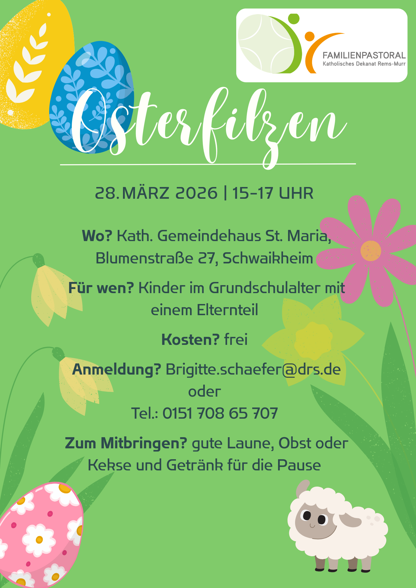 Ort: katholisches Gemeindezentrum St. Maria, Blumenstraße 27, in Schwaikheim.